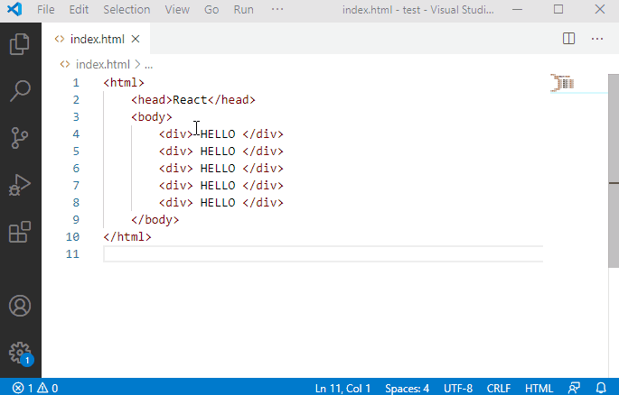 여러 줄이 동시에선택 되며, 한 번에 같은 글자를 여러줄 타이핑할 수 있습니다.