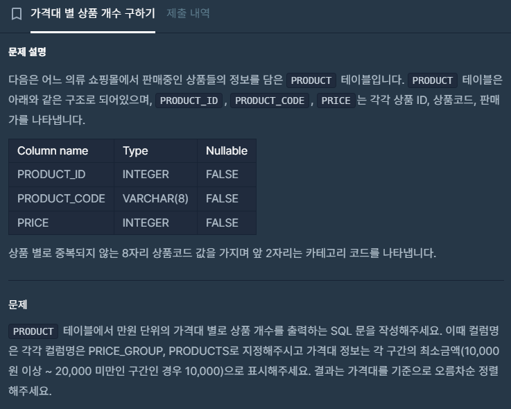 - 구간 값(PRICE_GROUP)은 해당 구간의 최소 금액으로 표시