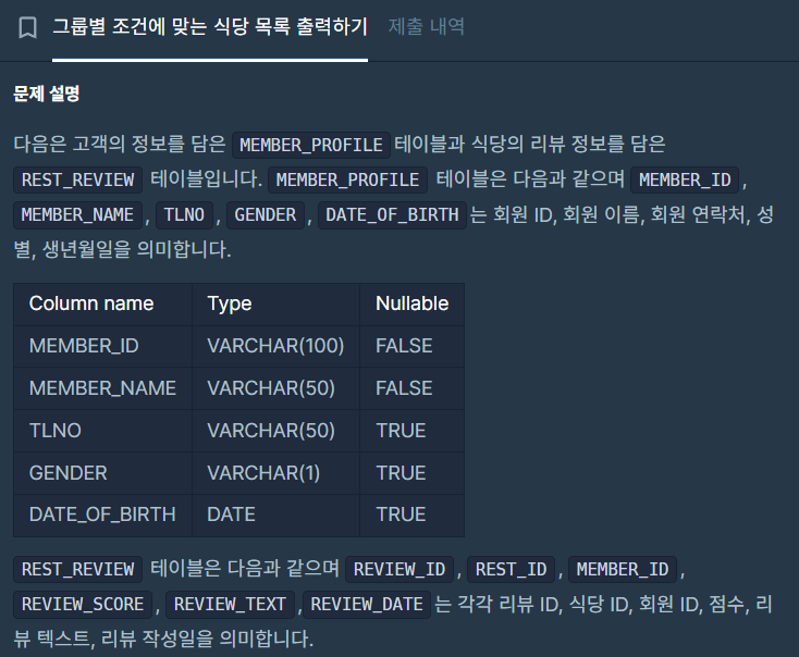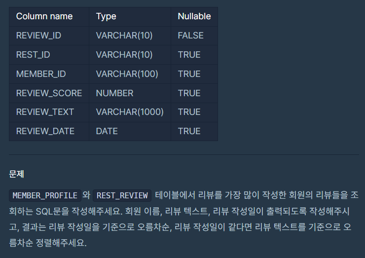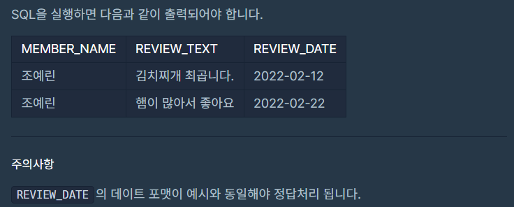 - MEMBER_NAME, REVIEW_TEXT, REVIEW_DATE 컬럼