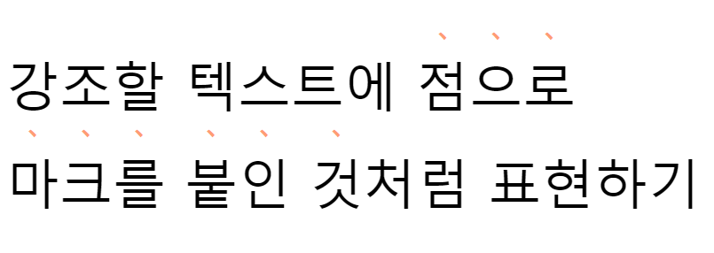 <p>강조할 텍스트에 <span class="emphasis">점으로<br>마크를 붙인 것</span>처럼 표현하기</p>