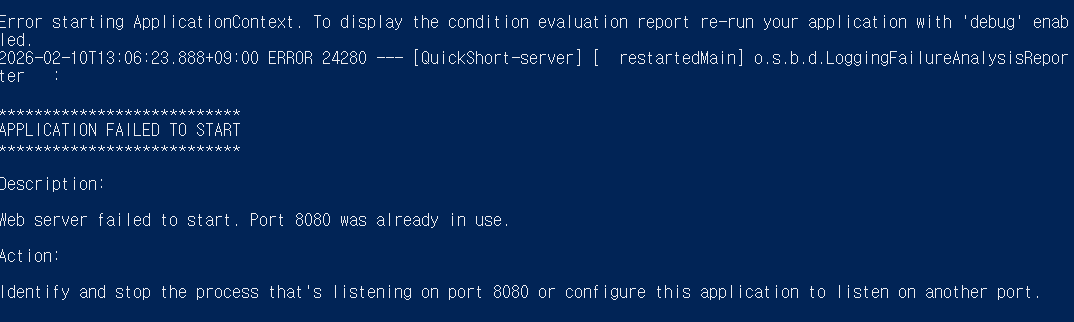 다른 포트로 바꾸고 싶으면 application.properties에 설정 가능