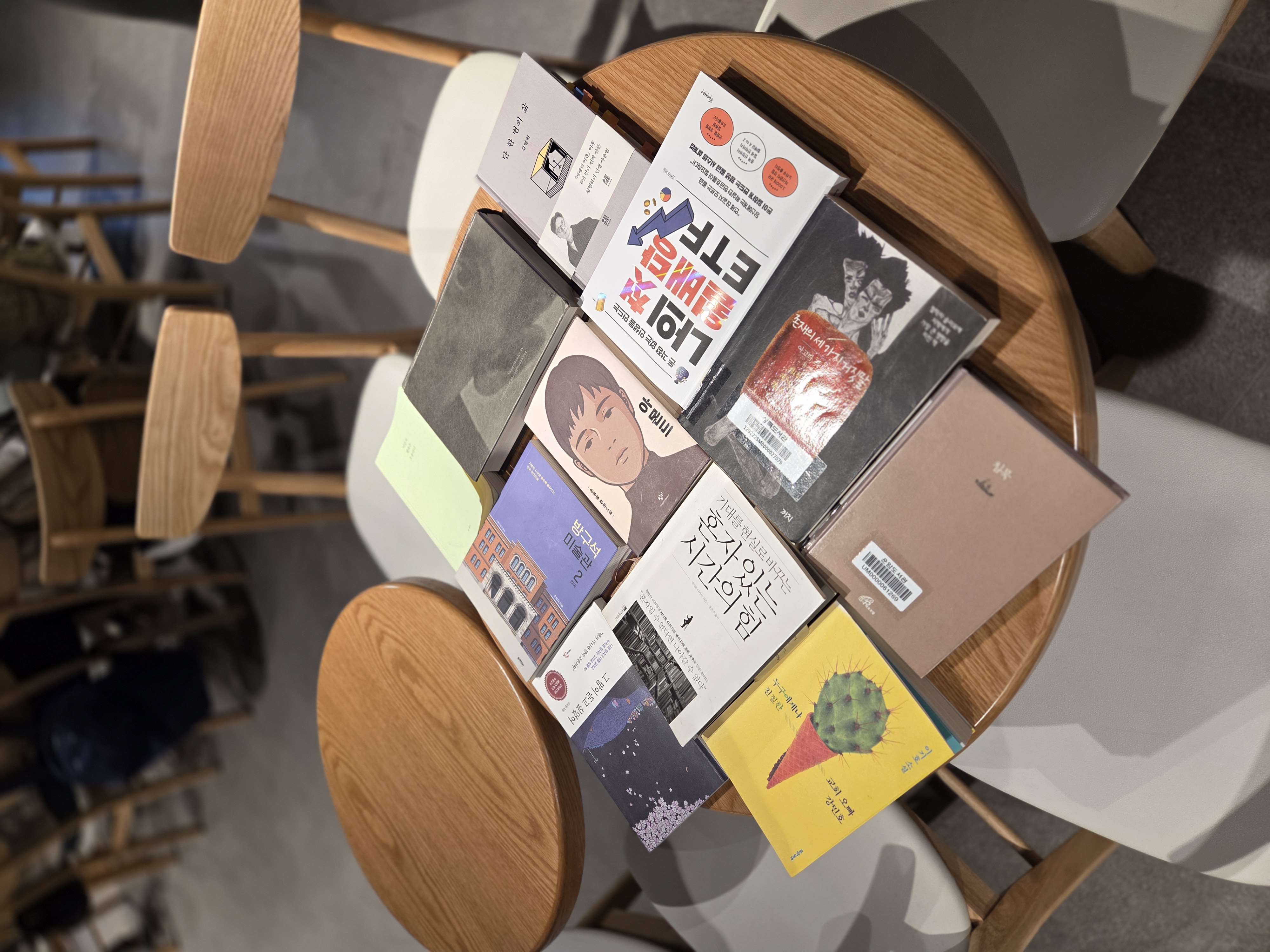 모임 장소는 카페꼼마 파랑새안과점. 처음 가봤는데, 공간이 정말 넓고, 열람용 책도 많아서 놀랐다. 그리고 책 큐레이션이 매대마다 놀랍게도 정말 잘 되어 있었다. 잠깐 둘러보는데도 여기가 천국인것 같았다.