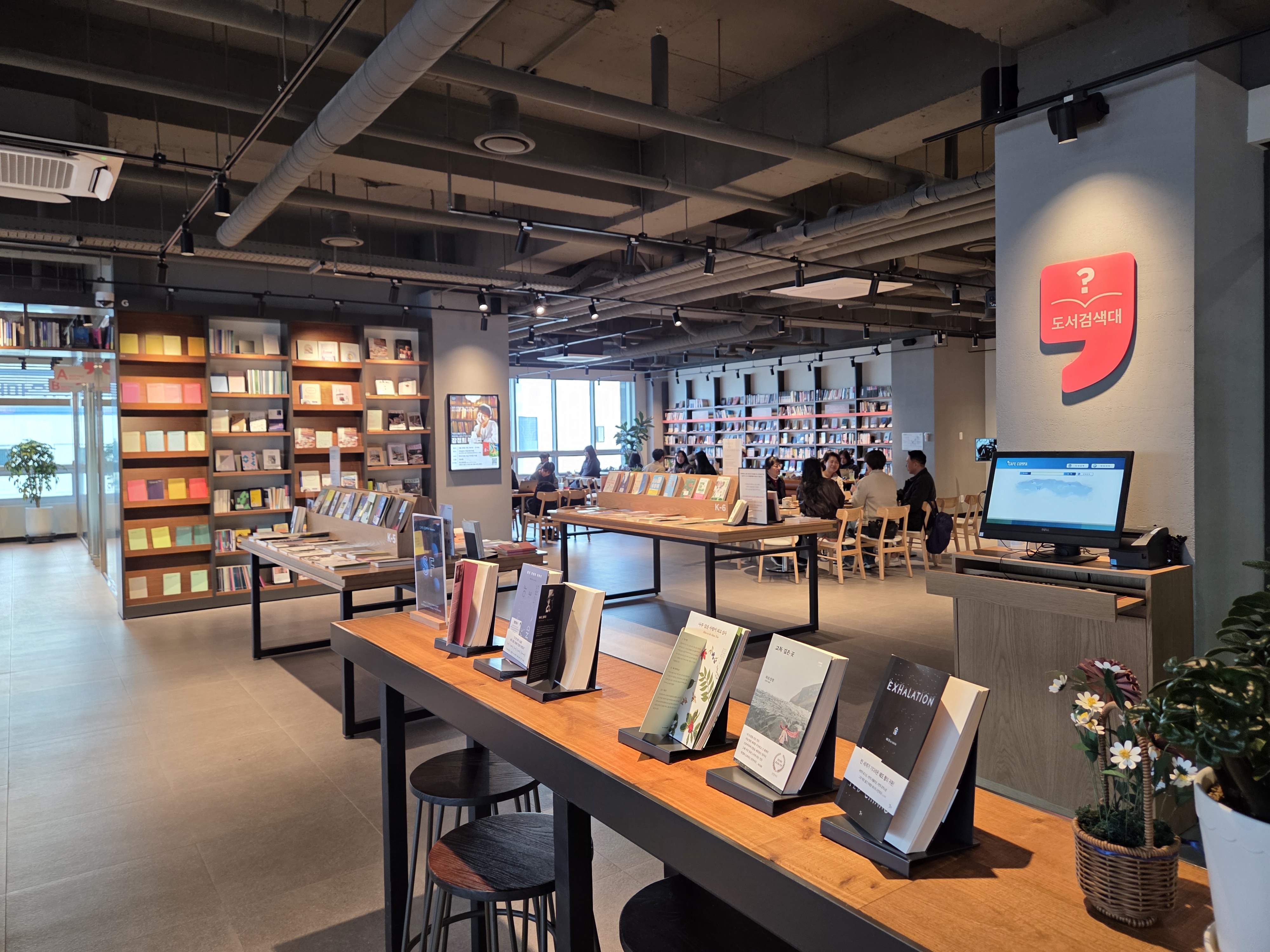 그리고 1층에 걸린 큰 그림을 보는데, 와, 여기 카페 스케일 장난 아니구나 싶었다. 요즘은 서점이 책만 파는 서점보다는 이렇게 문화공간처럼 꾸며진 곳이 더 많아진 느낌이다. 카페인데도 책을 10% 할인해서 살 수 있고, 공간 자체가 꽤 쾌적하게 잘 꾸며져 있었다.