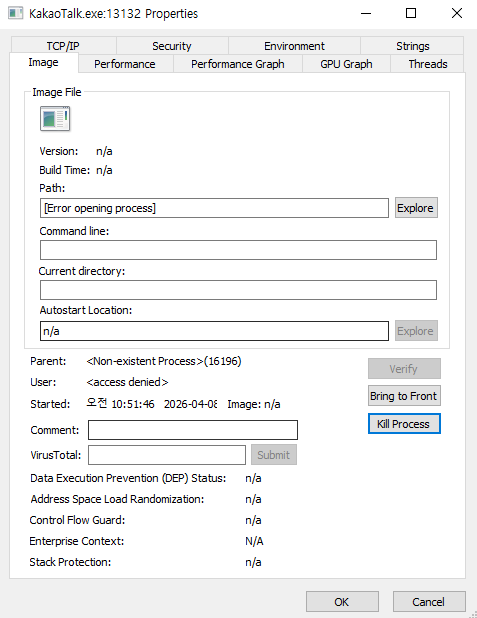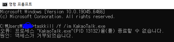 CMD에서 명령어로 카톡 프로세스 강제 종료하면 작업관리자에 안 보여도 잡아낼 수 있음