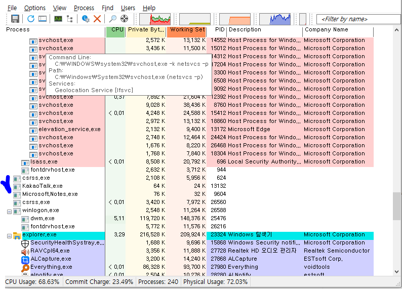 이때는 Microsoft에서 제공하는 Process Explorer 도구를 사용하면 일반 작업관리자에서 종료 안 되는 대부분의 숨겨진 프로세스를 강제로 종료할 수 있다.