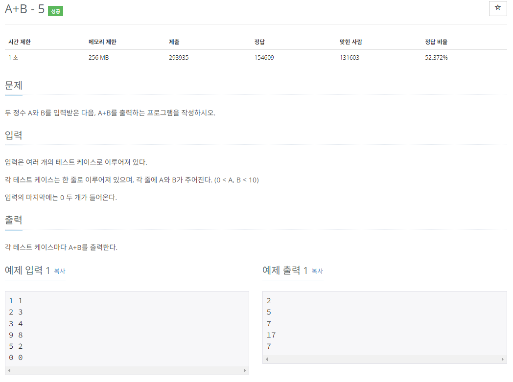 두 정수 A와 B를 입력받은 다음, A+B를 출력하는 프로그램을 작성하시오.