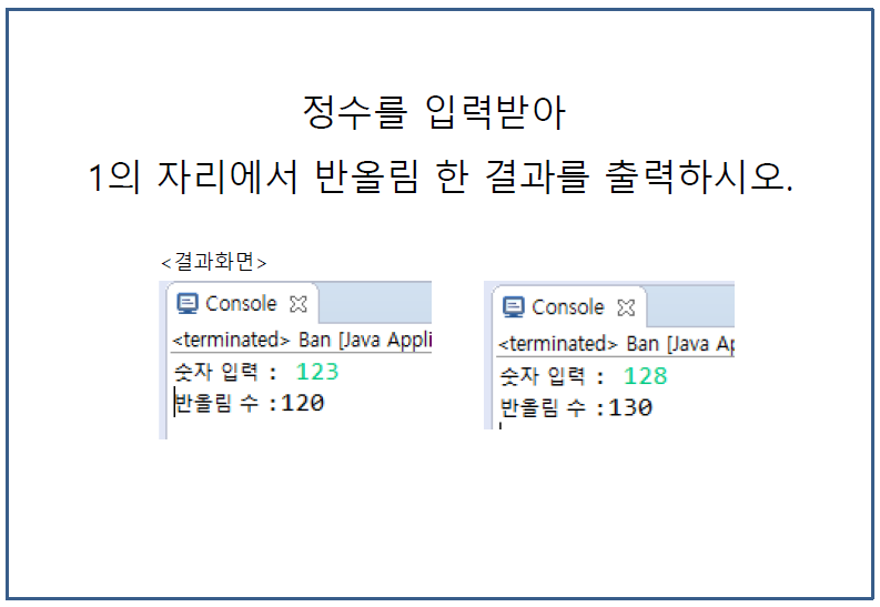 정수를 입력 받아 1의 자리에서 반올림 한 결과를 출력하시오.