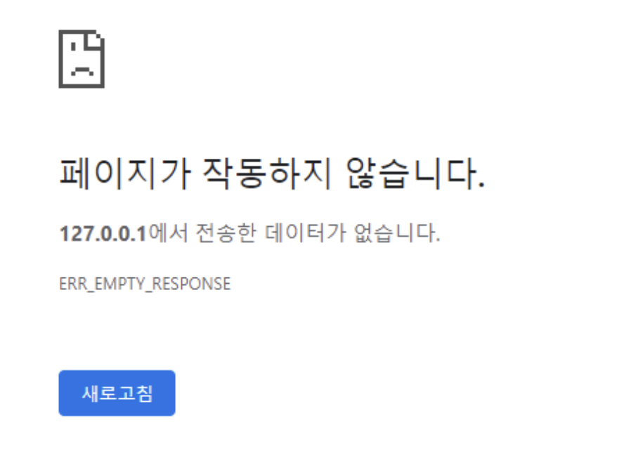 127.0.0.1에서 전송한 데이터가 없습니다.