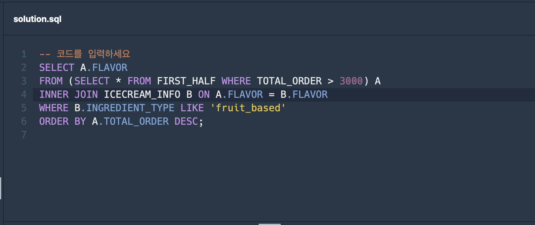 3. A와 ICECREAM_INFO B를 FLAVOR Column으로 INNER JOIN한다.