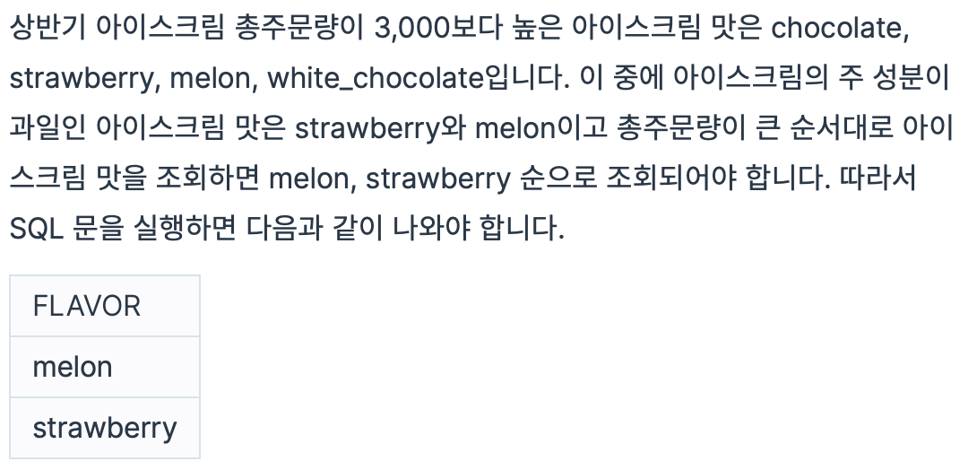 상반기 아이스크림 총주문량이 3,000보다 높으면서 아이스크림의 주 성분이 과일인 아이스크림의 맛을 총주문량이 큰 순서대로 조회하는 SQL 문을 작성