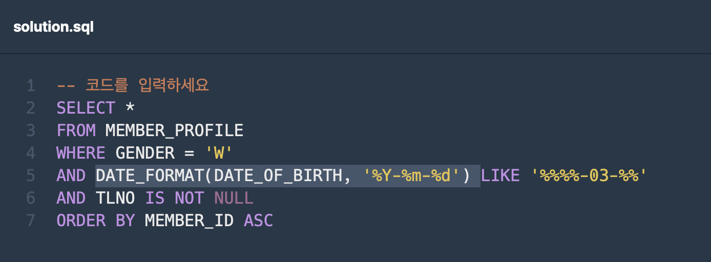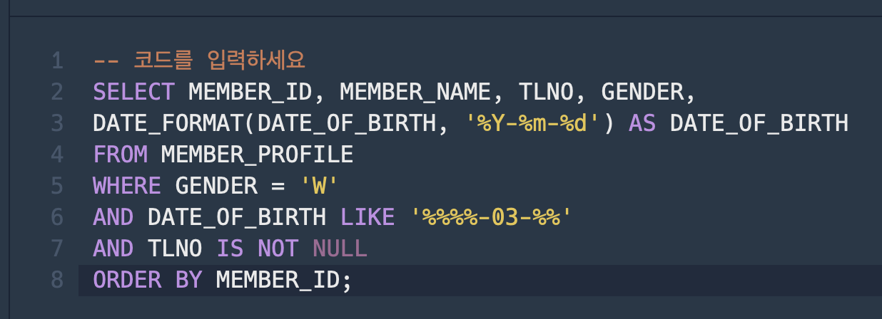 데이트 포매팅을 WHERE 절에 해서 그런가? 그럼 SELECT 절에다 해 줘야겠다. 하지만 SELECT 절에서 포맷팅을 해 주면