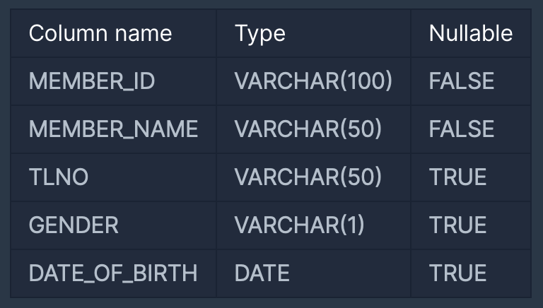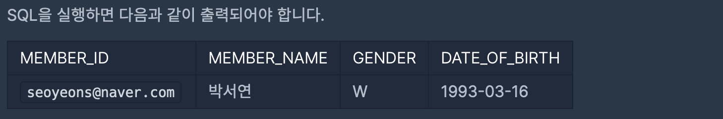 DATE_OF_BIRTH의 데이트 포맷이 예시와 동일해야 정답처리 됩니다.