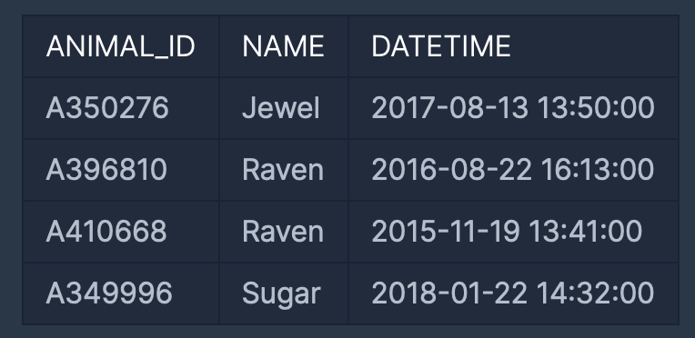 예를 들어 ANIMAL_INS 테이블이 다음과 같다면