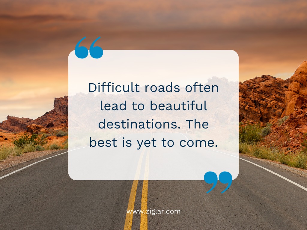 Difficult roads often lead to beautiful destinations. The best is yet to come.