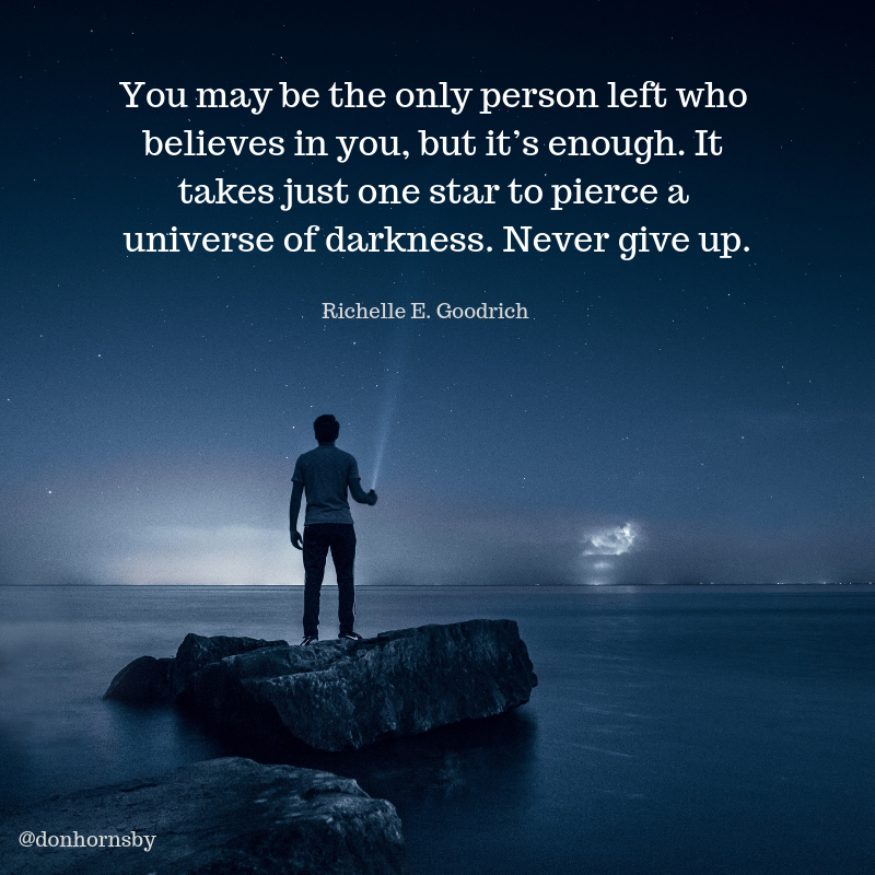You may be the only person left who believes in you, but it's enough. It takes just one star to pierce a universe of darkness. Never give up.