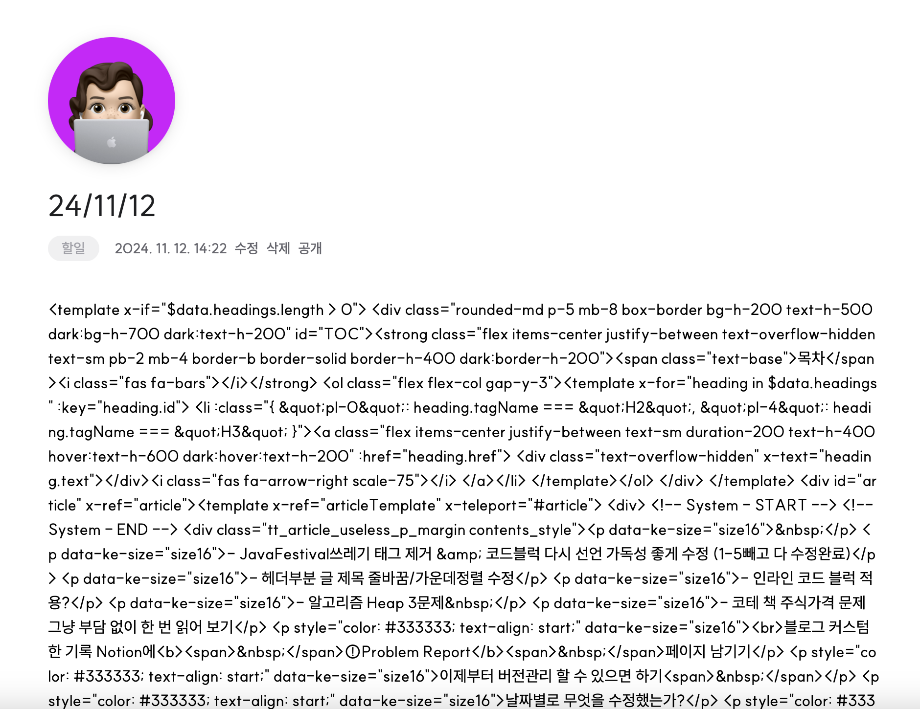 html 편집 잘못해서 누르는 글마다 이렇게 됨...ㅜㅜ