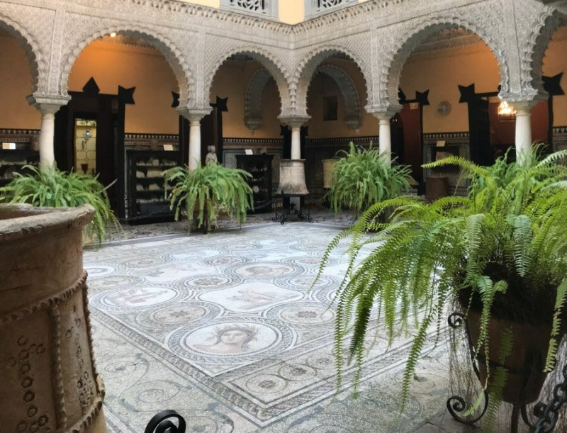 세비야 역사지구의 좁은 골목 안에 자리 잡고 있는 이 저택은 15세기에 지어진 후 16세기에 재건축되었다. 여러 귀족들을 거쳐 1901년 도나 레흘라 마농 메흐헤리나 레브리나 공작 부인의 소유가 된다. 어려서부터 고고학에 관심이 많아 여러 나라를 여행했고, 마드리드 왕립예술 아카데미 회원이자 헝가리 왕립예술아카데미 최초의 여성 회원인 그녀는 로마 시대 최고의 모자이크 수집가였다. 세비야에서 7km 밖에 떨어지지 않은 이탈리나 이탈리카(Italica; 현재 명칭은 산티폰제)의 로마 시대 유적지에서 거의 2세기 동안 도굴꾼들에게 약탈당하던 모자이크를 구해낸 것이다.