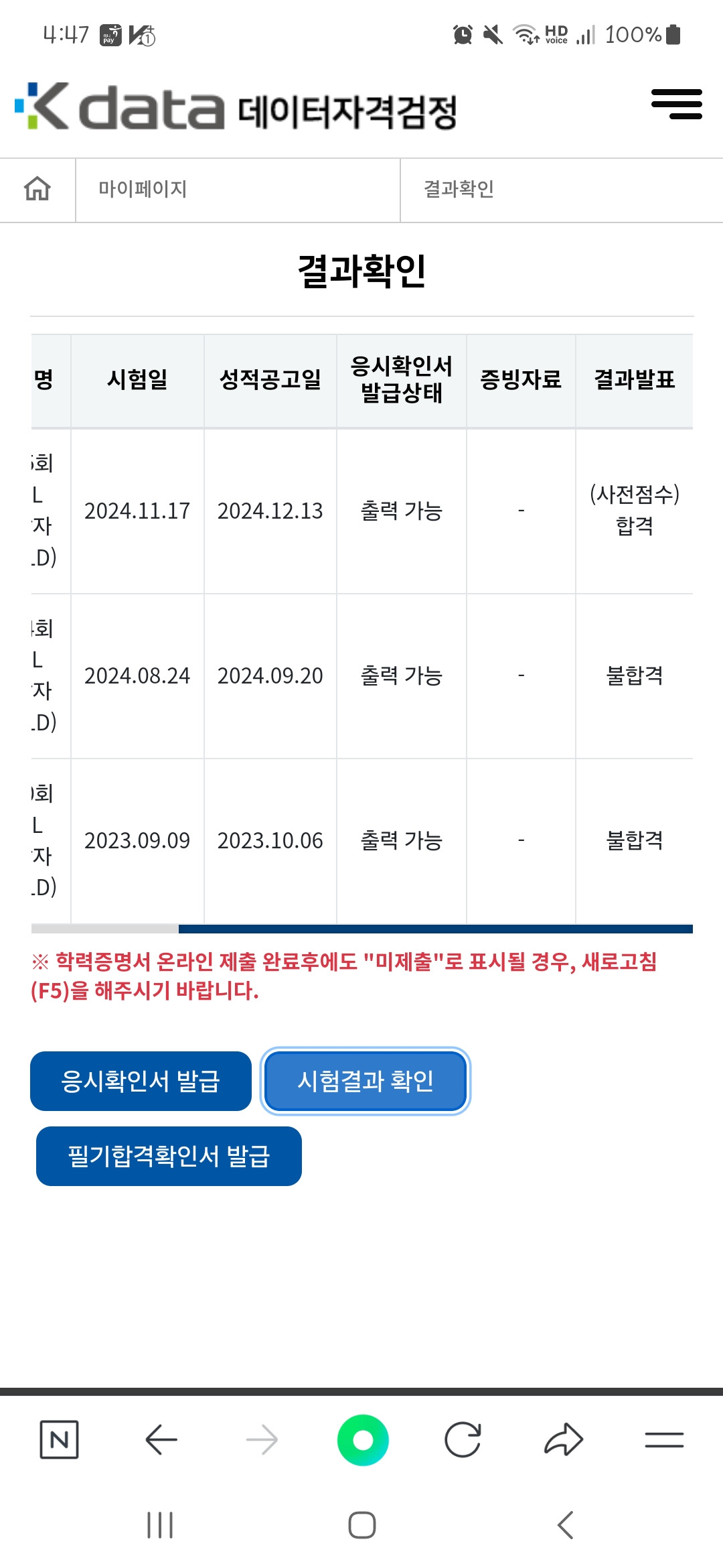 9월에 시험본거 당연히 패스인 줄 알고 룰ㄹ랄라 집에 왔는데