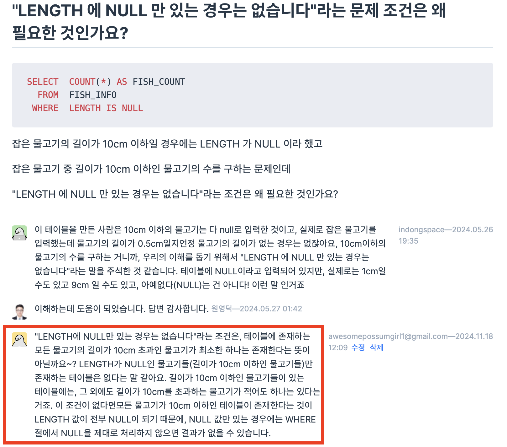 WHERE LENGTH IS NULL;🐦 왜 "LENGTH 에 NULL 만 있는 경우는 없습니다"라는 조건은 왜 필요한가?