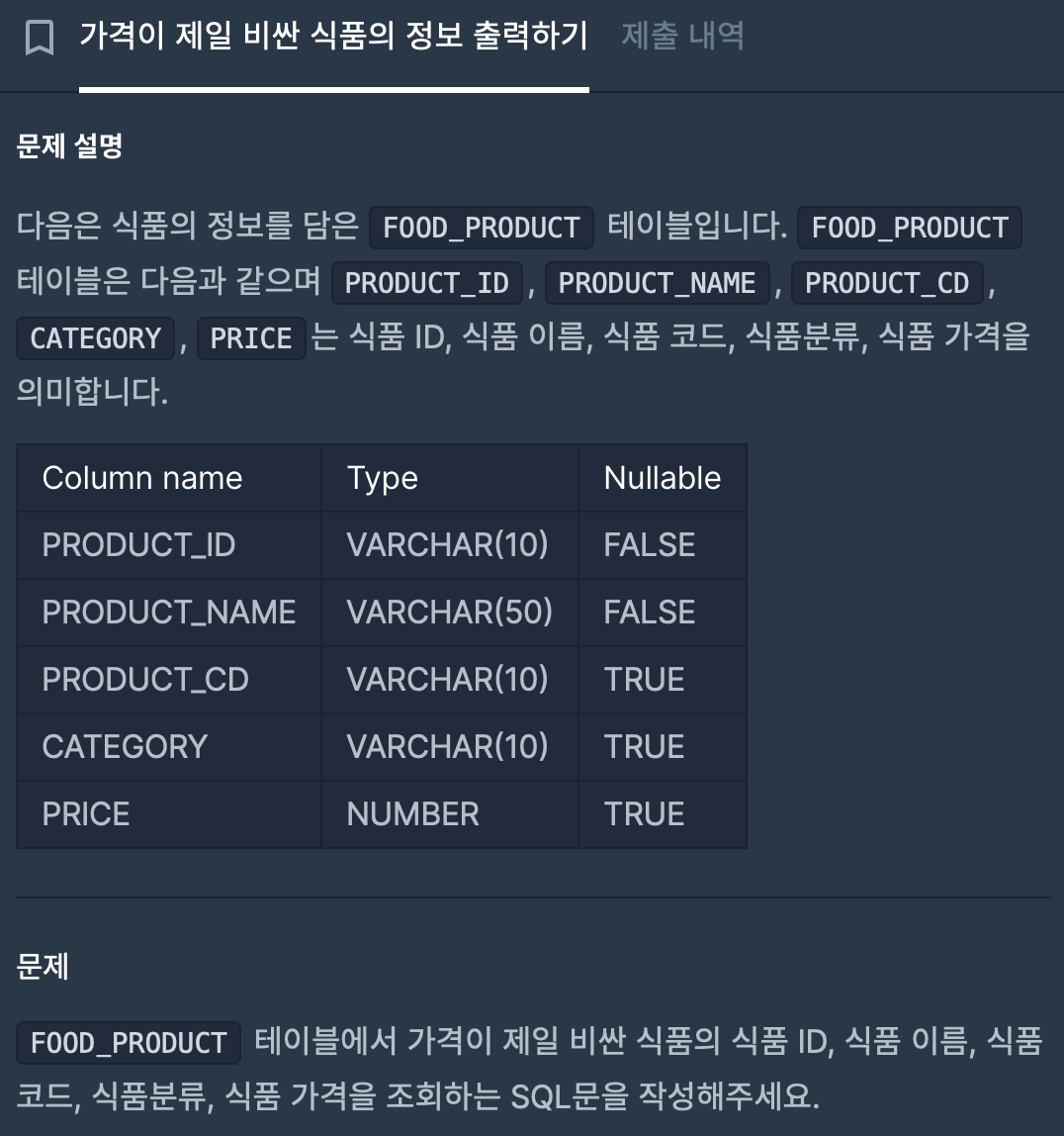 5. 가격이 제일 비싼 식품의 정보 출력하기
