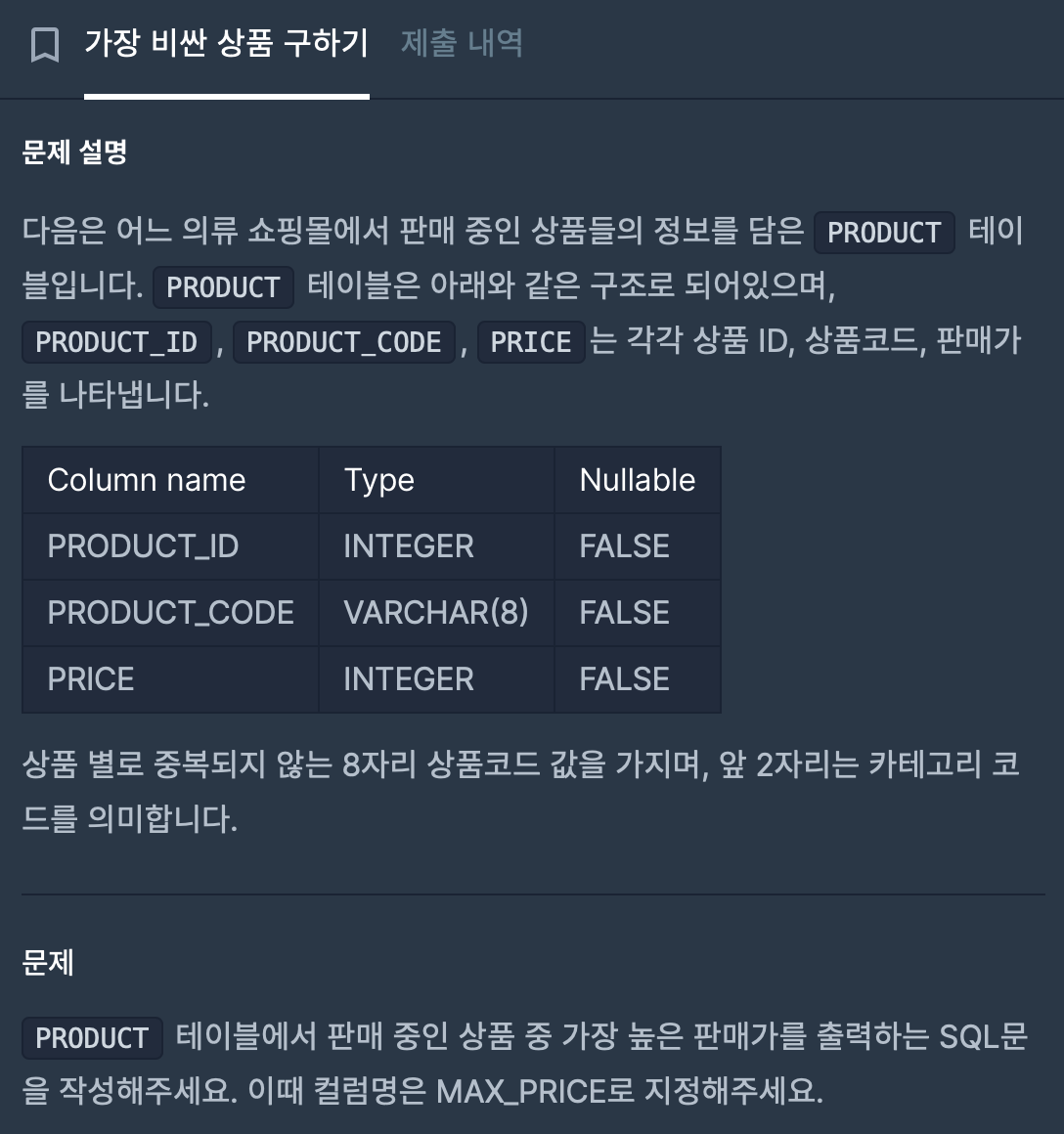 프로그래머스 > 코딩테스트 연습 > SLQ > `SUM, MAX, MIN`