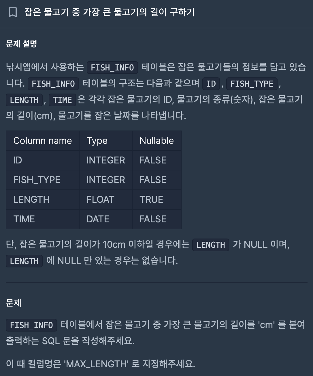 3. 잡은 물고기 중 가장 큰 물고기의 길이 구하기