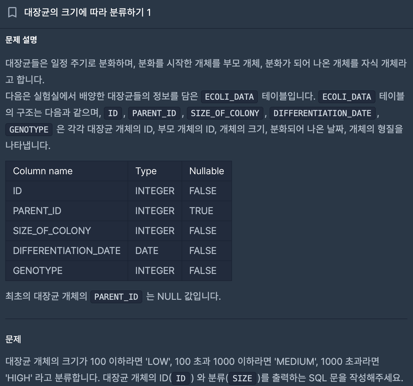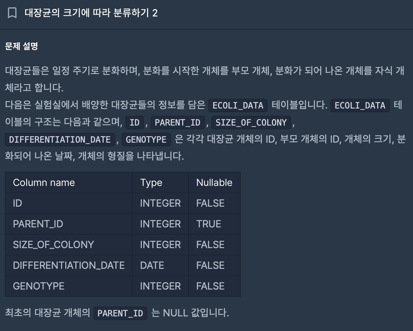 | [프로그래머스] 👩🏻💻 (MySQL) 대장균들의 자식의 수 구하기 문제 풀이 (44) | 2024.11.20 |