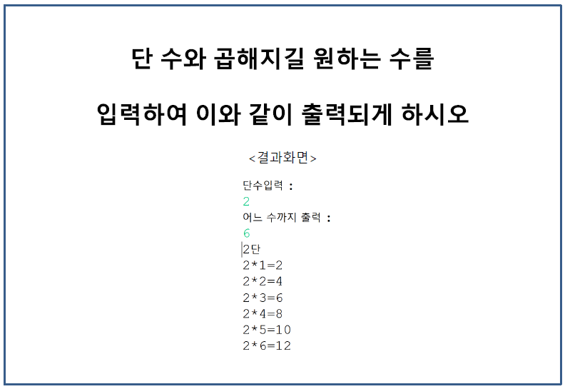 단 수와 곱해지길 원하는 수를 입력하여 이와 같이 출력되게 하시오