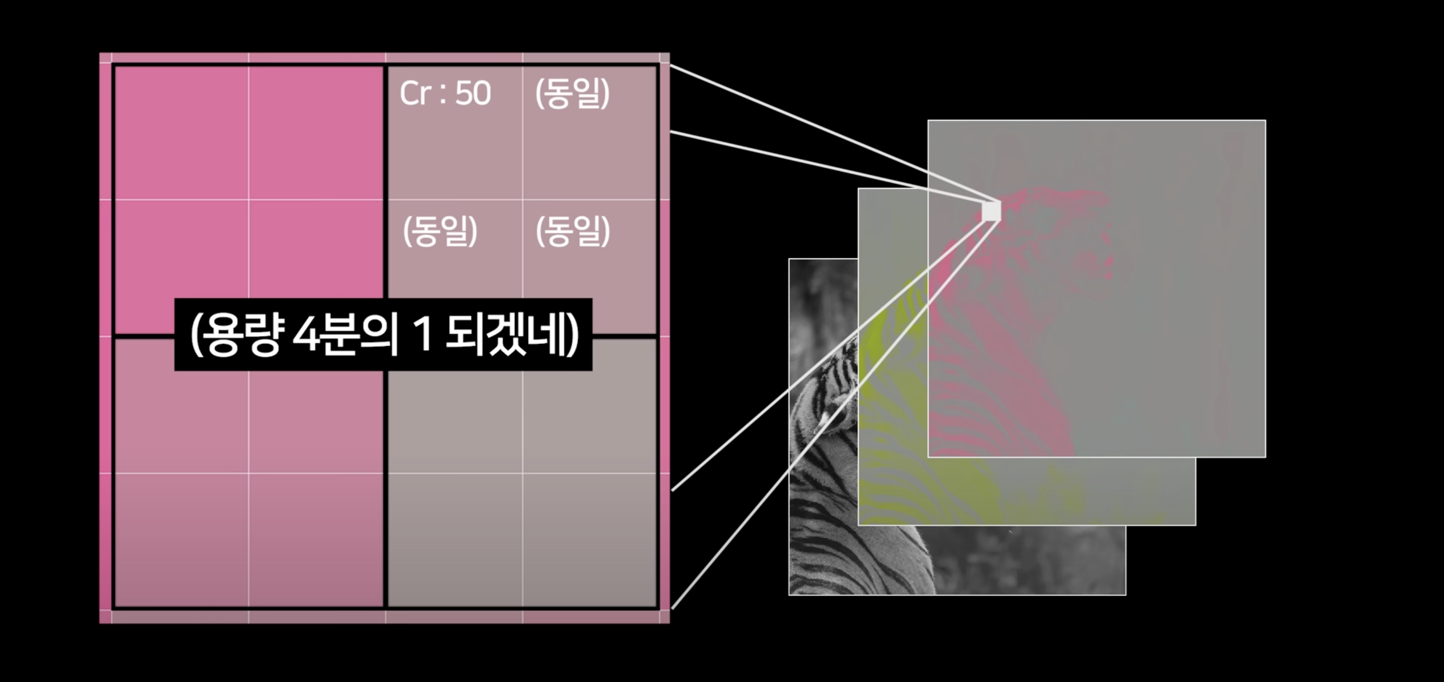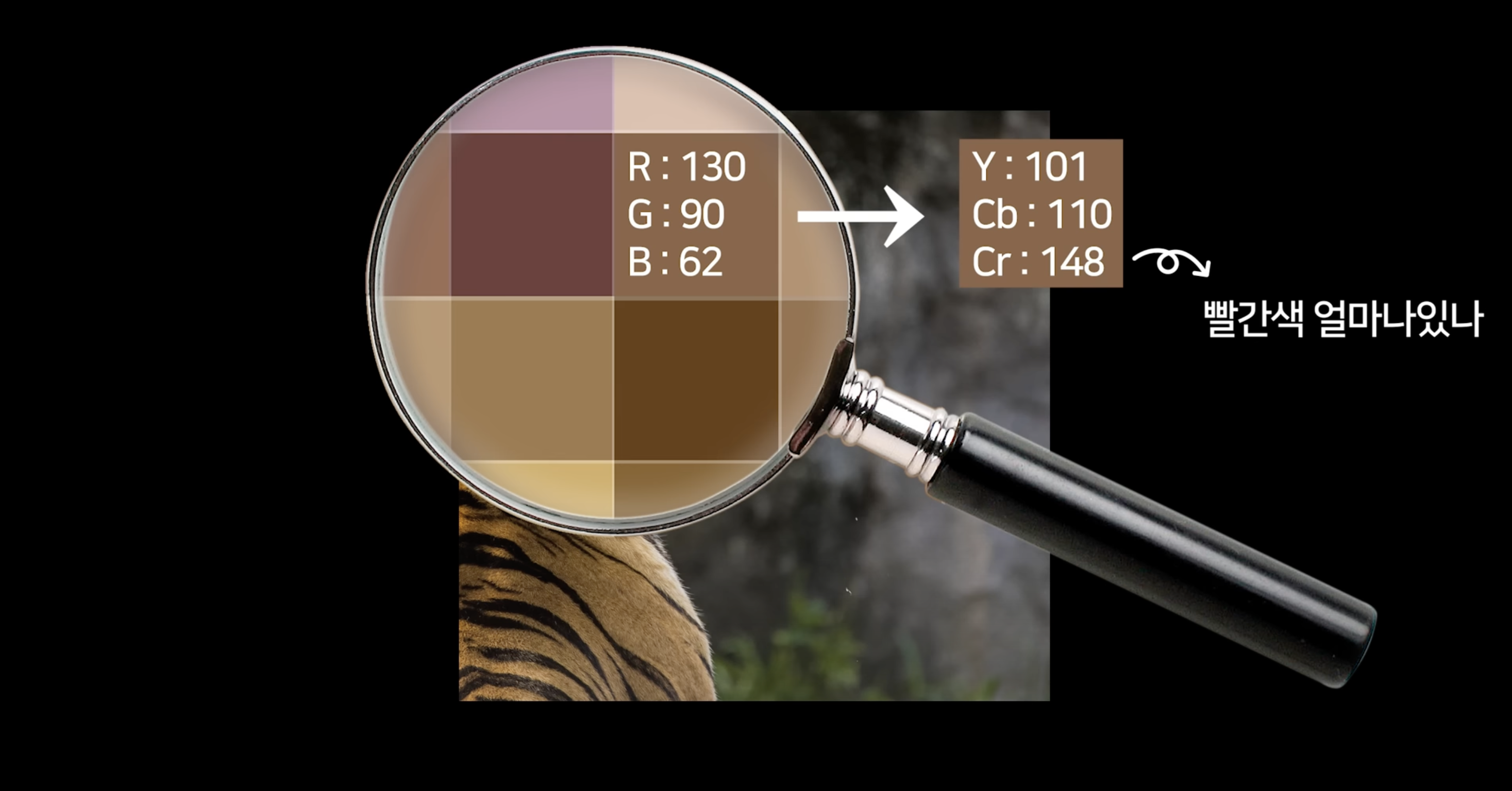 하지만 이걸 Y, Cb, Cr로 바꿀 수 있다.
