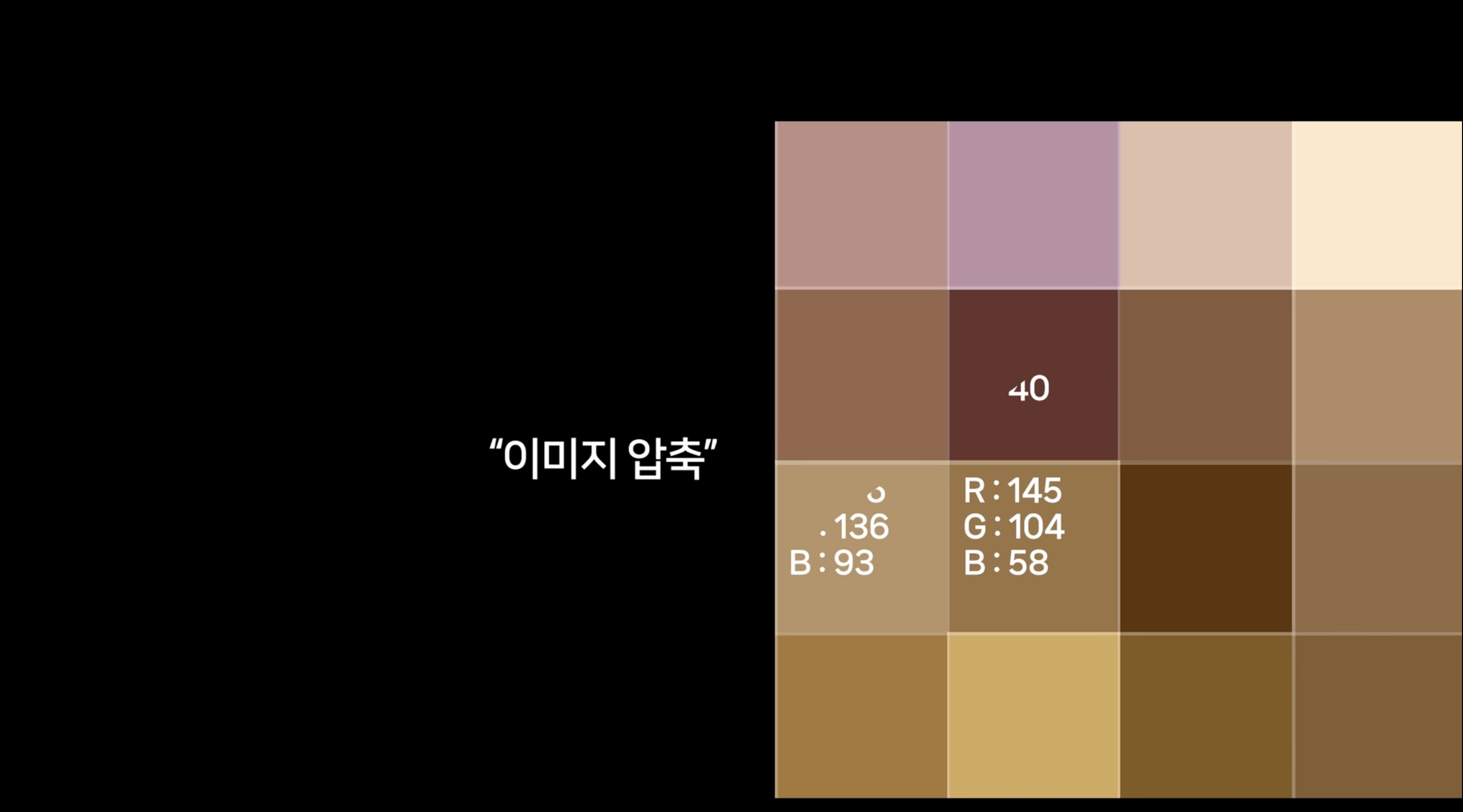 JPEG는 손실 압축이라는 걸 하는데, 아래 그림처럼 JPEG 저장에 필요한 색상숫자의 양을 지워버리는 것이다.