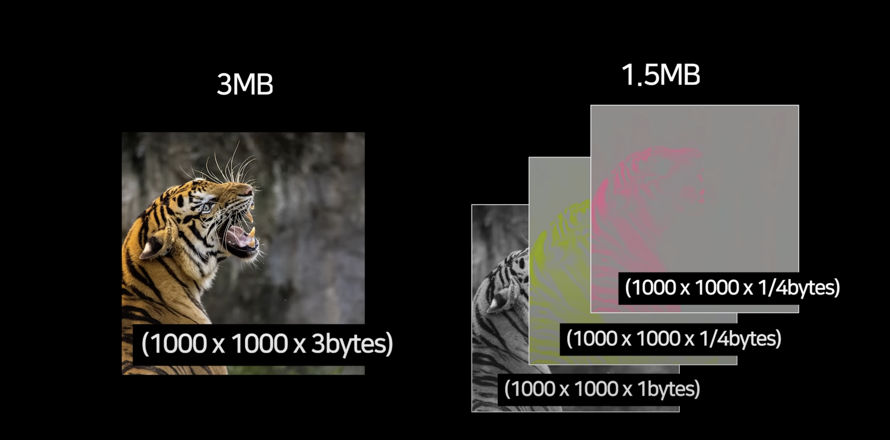 따라서 하나의 가로 세로 1000픽셀인 사진 한 장을 저장하는데에는 적어도 3mb의 공간이 필요하다고 계산 해 볼 수 있다.