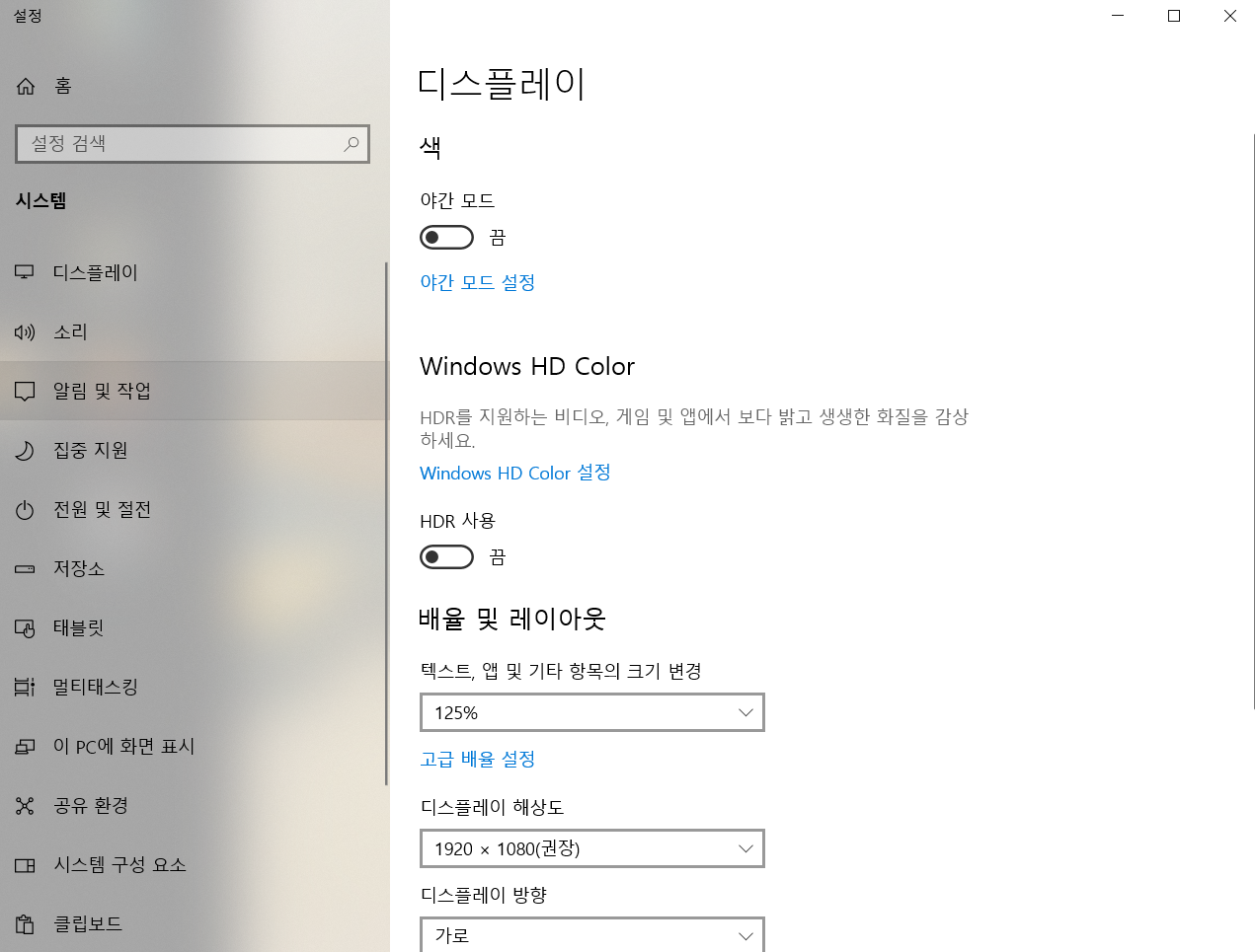 제어판 > 시스템 > 디스플레이 > HDR 사용 끄기