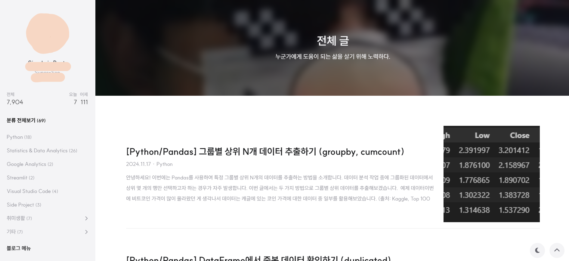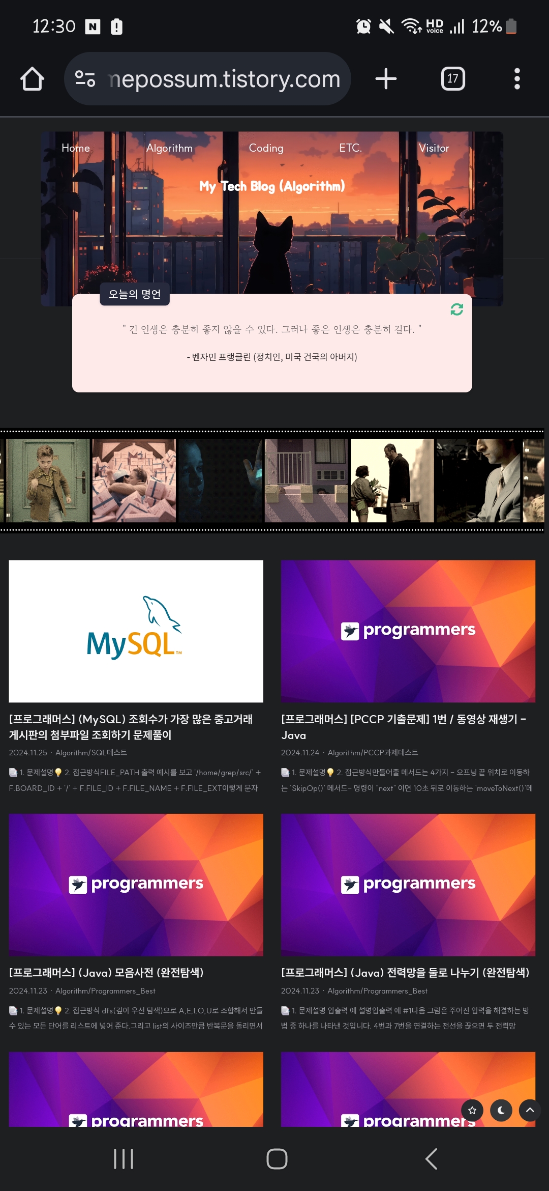 모바일에서 접속하면 Side Bar가 없어져서 다른 카테고리에 들어가기 어려움