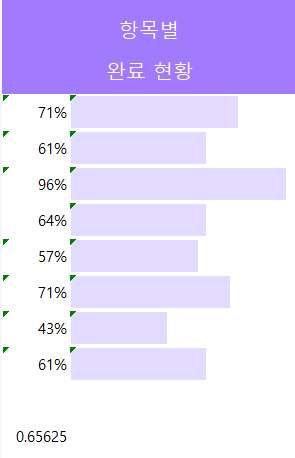 랜덤하게 0을 입력해서 진행률을 다르게 설정해주니 백분율이 잘 계산되어 나오는 걸 확인할 수 있다.