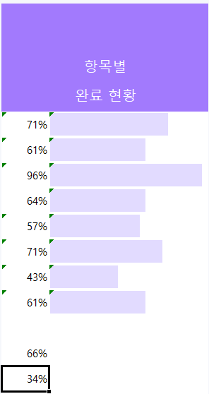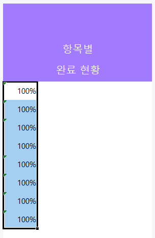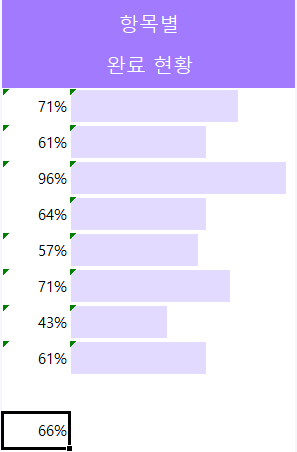 다음으로 옆 칸에 완료율을 시각적으로 더 쉽게 보여주는 `데이터 막대`를 추가해 보자!