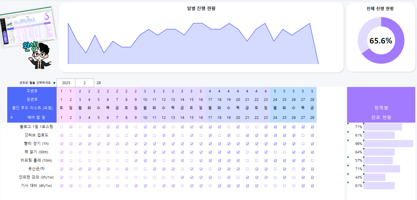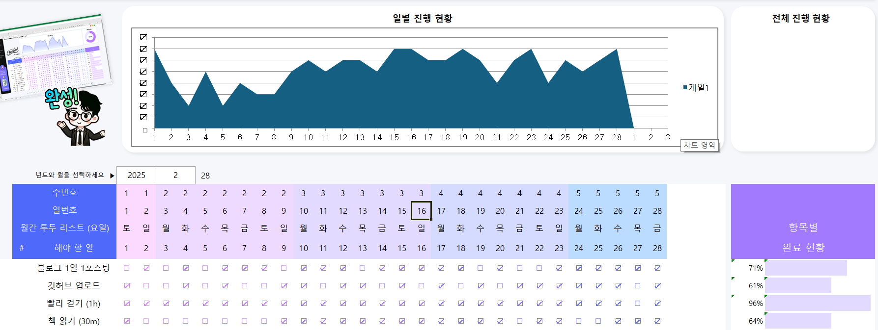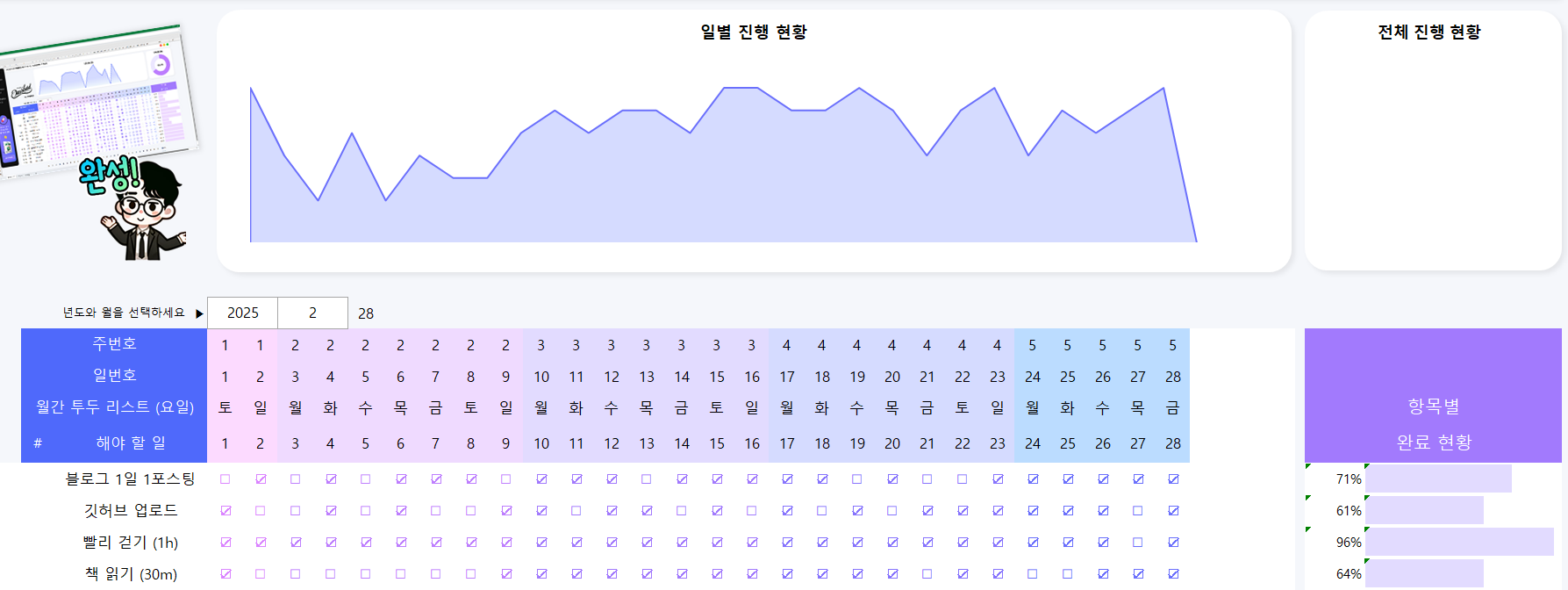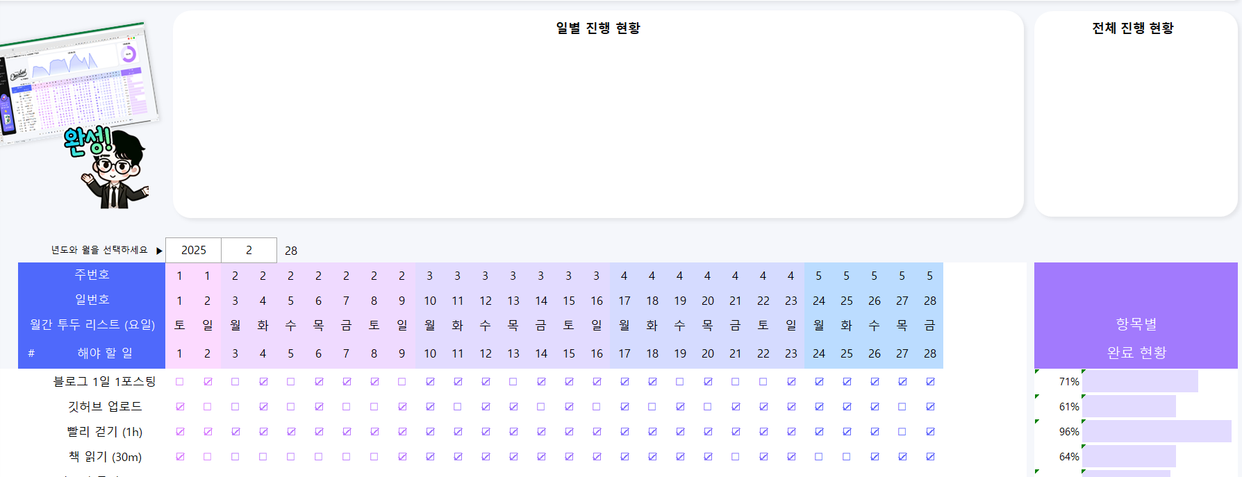 여기까지 했으면 이제 상단부에 일별 진행률을 추가하는