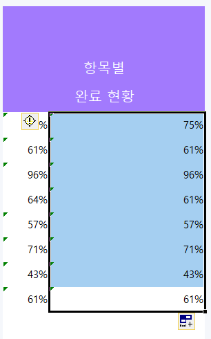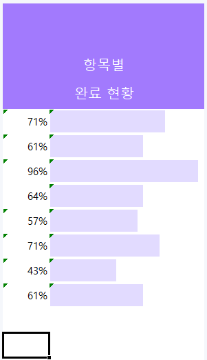 그럼 아래처럼 백분율 셀이 연동되어 텍스트 상자에 숫자가 표시된다.