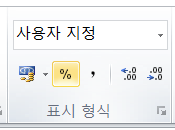 백분율로 바꾸는 단축키 `Ctrl` + `Shift` + `5`
