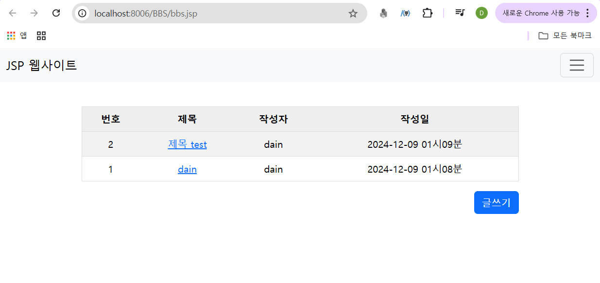 3. bbs.jsp 페이지에서 글목록 불러오기