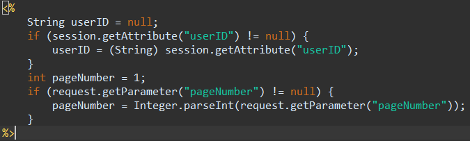 스크립트릿 안에 기본적으로 pageNumber를 1 로 설정했다.