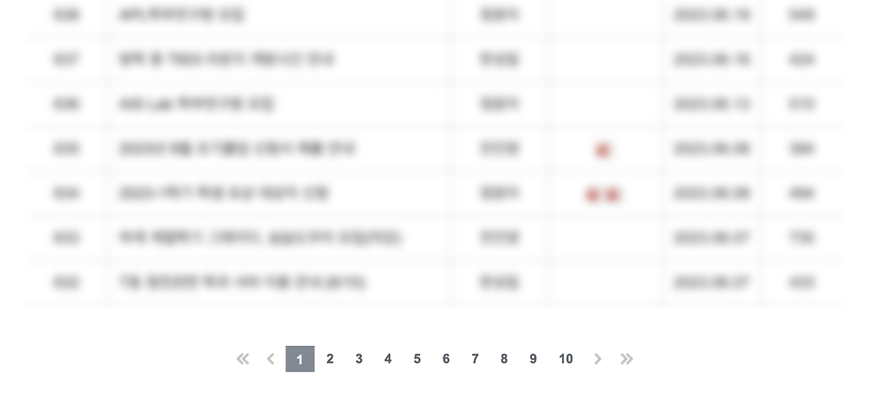 아래와 같이 보통 웹사이트 게시판 아래에는 페이지 번호가 있다. 페이지 번호를 하나 누르면 10개에서 15개 정도의 게시물이 나누어서 화면에 보여지게 된다. 이렇게 특정 페이지를 클릭하면 그 페이지에 해당하는 데이터만 불러와서 보여주는 것이 페이지네이션(페이지 처리, 페이징 기법이라고도 함)이다.