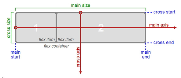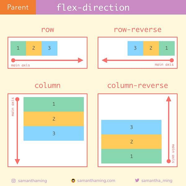 main axis 의 방향은 flex-direction 속성 에 의해 결정된다.
