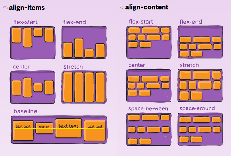 align-items와 align-content는 네 가지 속성을 공유한다.