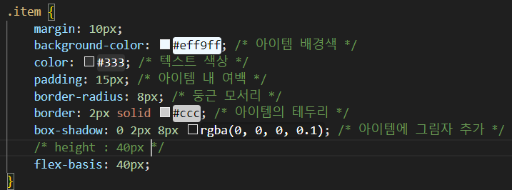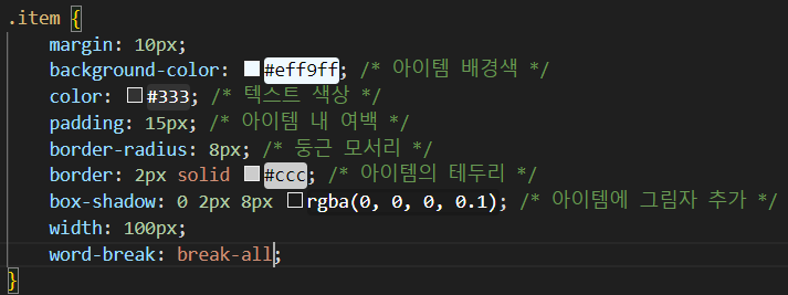 - flex-shrink: 0: 아이템이 축소되지 않도록 설정