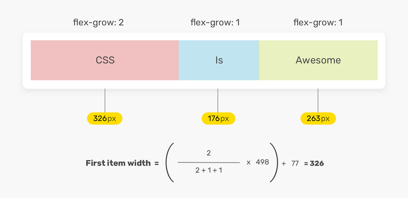 각 아이템의 flex-grow 값이 클수록, 여유 공간에서 차지하는 비율이 커진다.