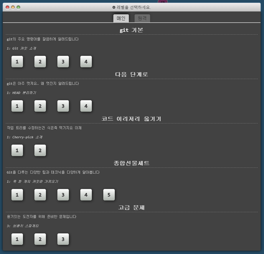 단계별로 연습하고 싶은 사람은 아래 팝업에서 레벨을 선택하면 된다.