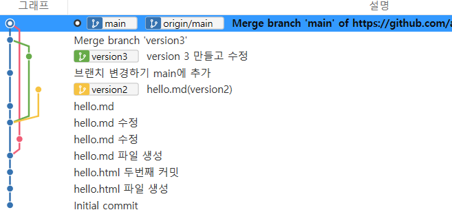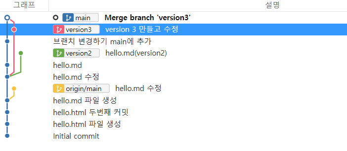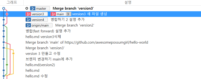 이 상태에서 version3를 master 로 병합