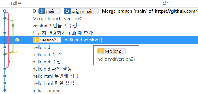 이번에는 master 이 version3이랑 나란히 있는게 아니라 위로 올라감
