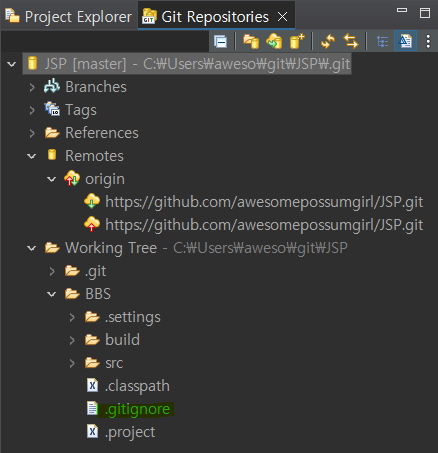 Repository: 아까 Git Repositories에서 만들어 놨던 경로를 클릭 그리고 [Finish]