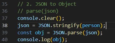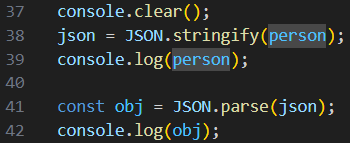 person 이라는 object를 JSON으로 변환할 때는 데이터들만 변환이 되고 함수는 포함이 안 됨.